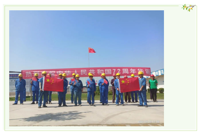 为庆祝祖国母亲72周年华诞,广东绿富域资源再生科技有限公司及旗下13家子公司张灯结彩、庄重悬挂国旗。营造喜庆祥和的节日氛围,充分彰显全员爱国热情和民族自豪感。