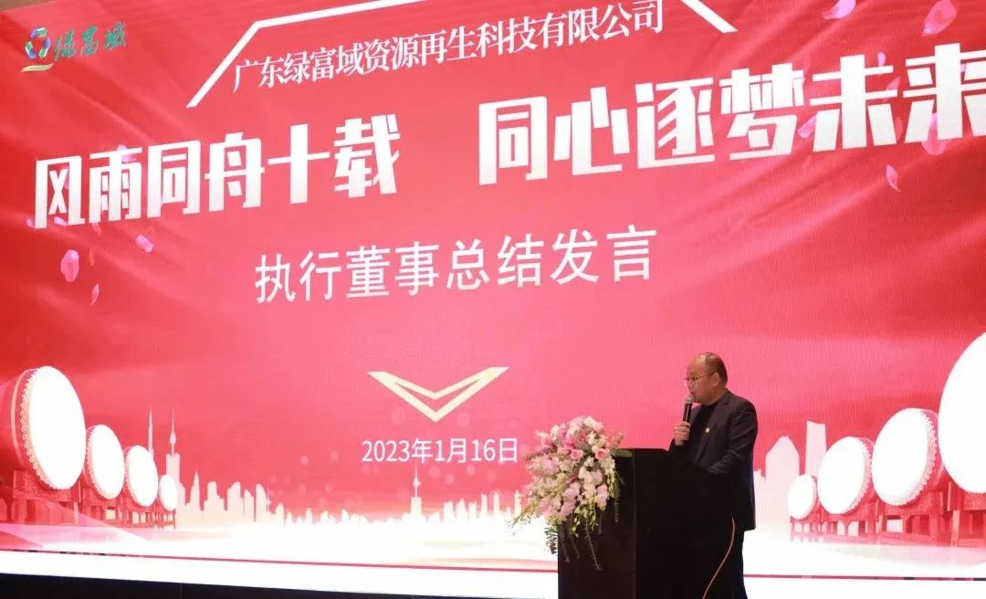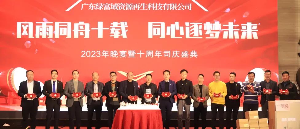 值此广东绿富域资源再生科技有限公司成立十周年之际,在2023年1月14日-1月16日开展以“行稳致远,精益求精”为主题的2022年度经营总结大会暨2023年经营规划会议,并在1月16日晚上同步开展了“风雨同舟十载,同心逐梦未来”为主题的十周年司庆盛典活动。