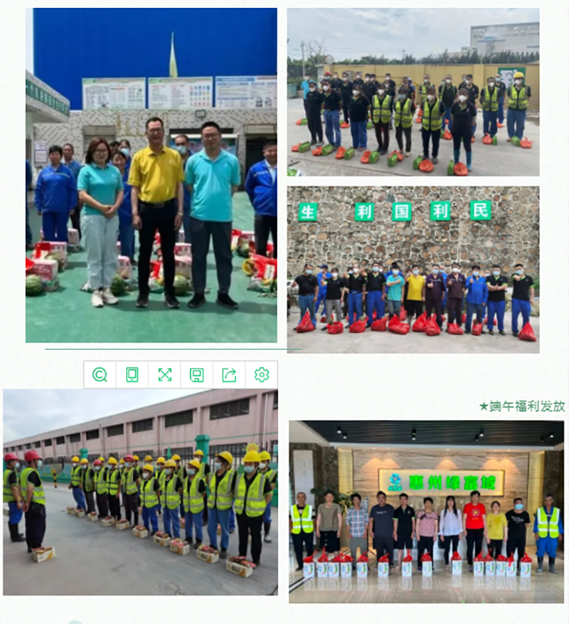 为向全体员工传递节日祝福和关怀,广东绿富域公司及旗下的13家子公司为全体员工发放了米、油、粽子、饮料、水果等节日福利,以暖心行动营造融洽温馨的工作氛围,以点滴细节表达对员工真诚的关心和肯定,以家的理念让绿富域成为更和谐、更温暖、更有凝聚力的大集体。