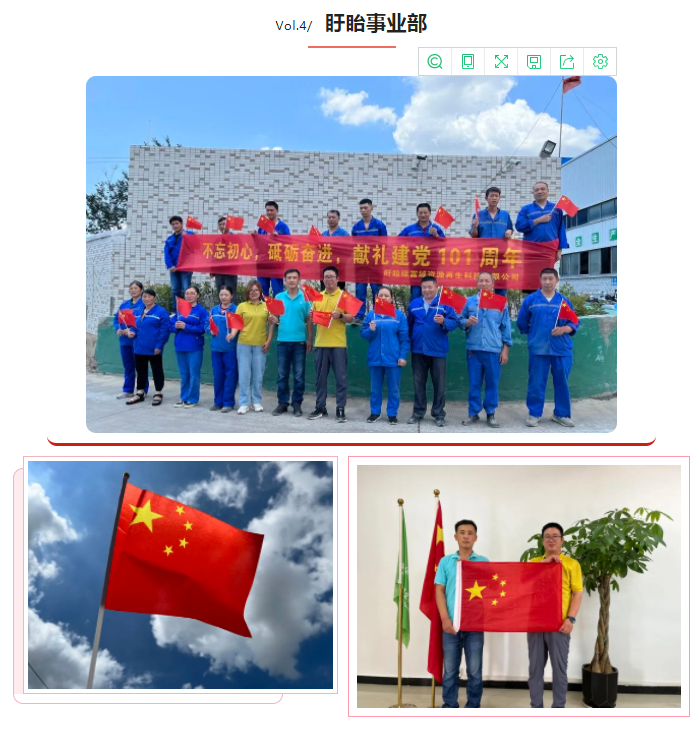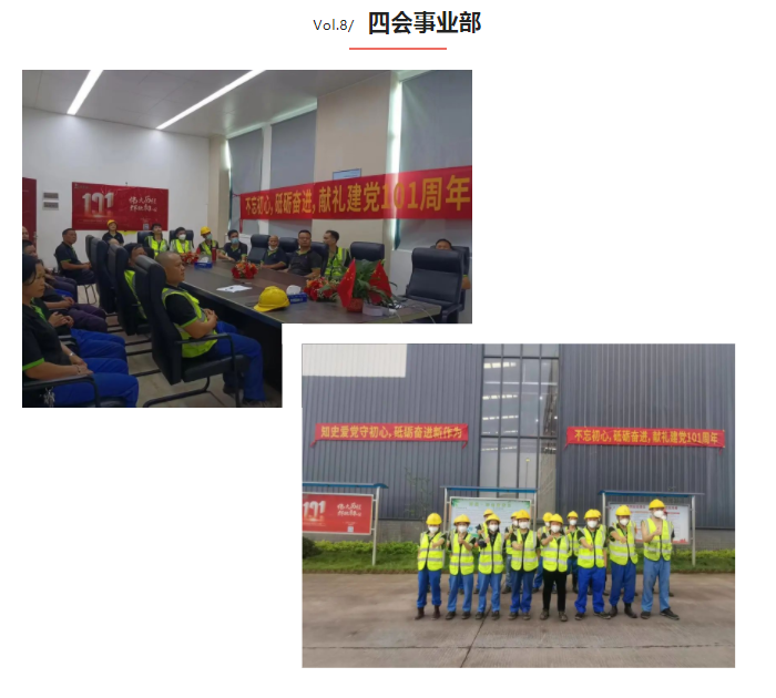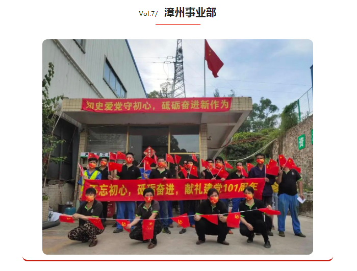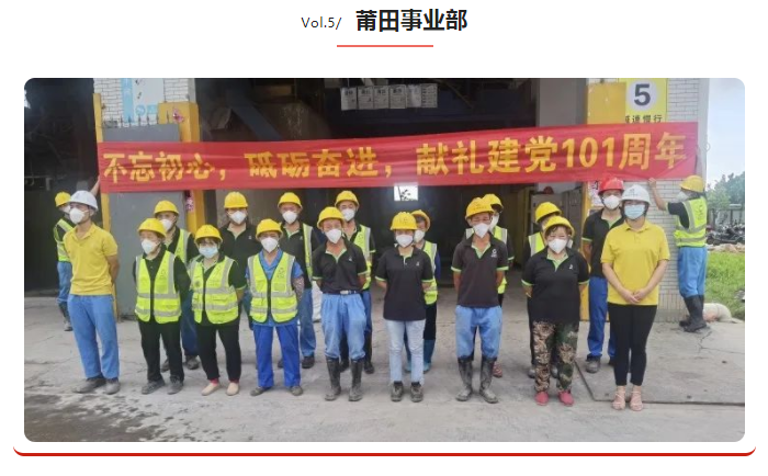 广东绿富域资源再生科技有限公司集团总部及各个事业部纷纷响应,通过开展党知识培训、观看党纪录片、悬挂庆党横幅、张贴庆党海报以及合影留念等宣传方式开展庆党主题活动。促使员工牢记“不忘初心,砥砺前行”的观念,在铭记历史的同时,也将知史爱党的思想落实到言行举止中,推动全体员工更好地听党话、跟党走,在做好本职工作的同时,不断推动公司走向更辉煌的未来!